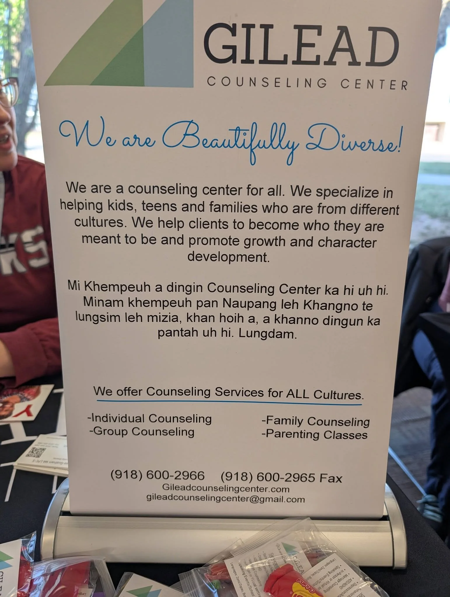 Gilead Counseling Services provides services to those from a diverse backgrounds and culture. We have providers that speak many languages including, Burmese, Spanish, Falam, Zopau/Zomi, Hindi and English.